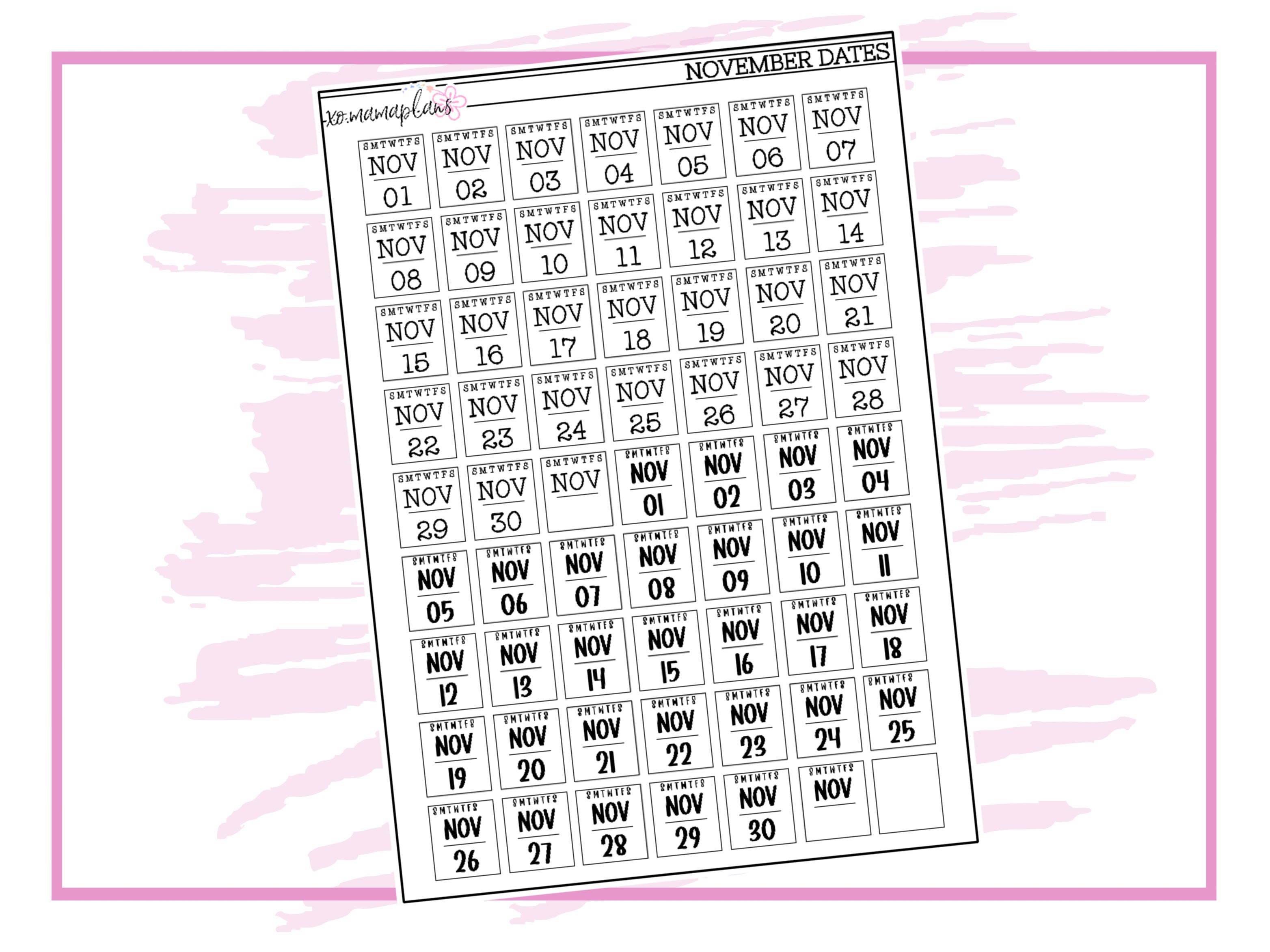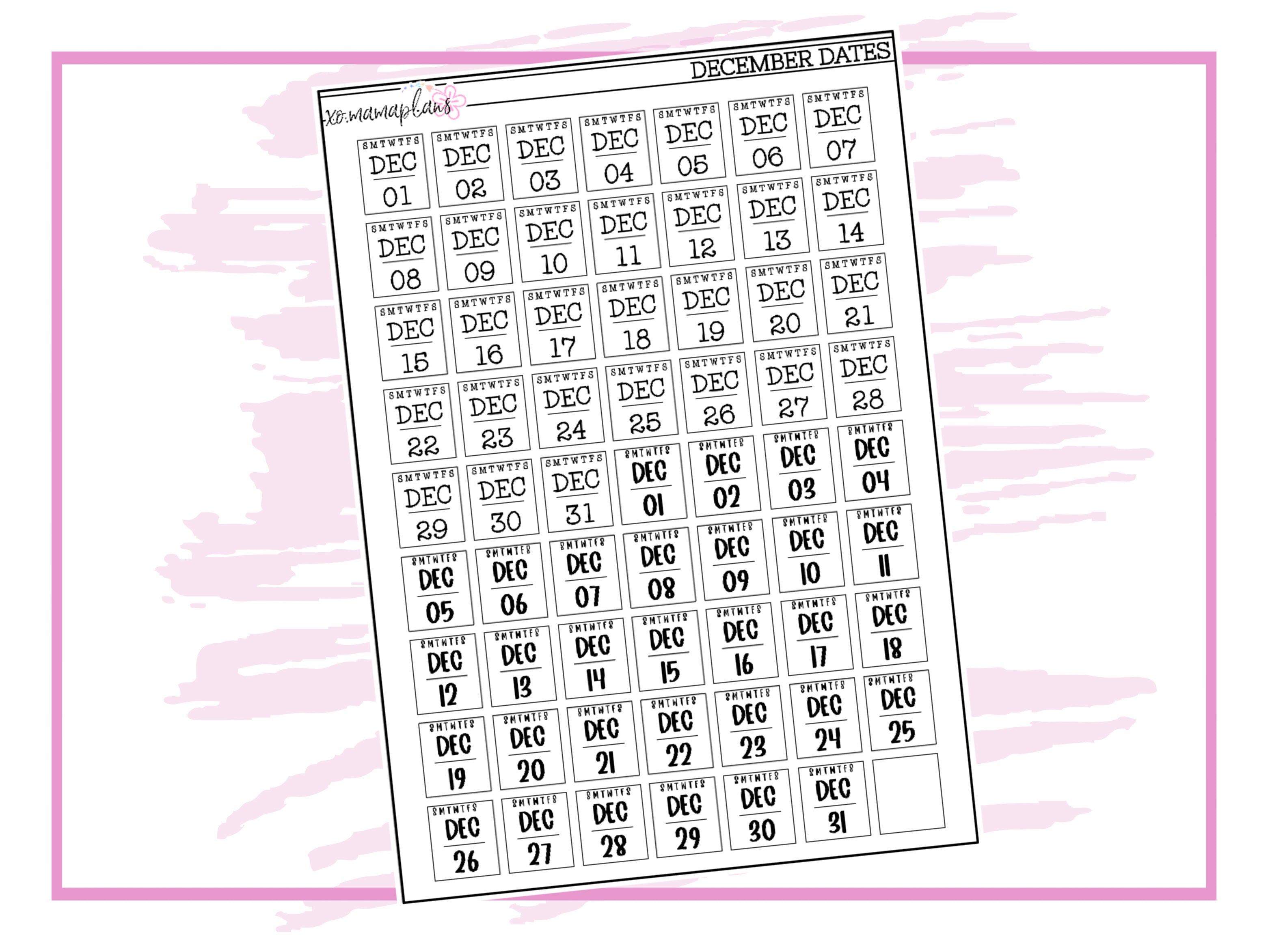 Month Date Number Stickers