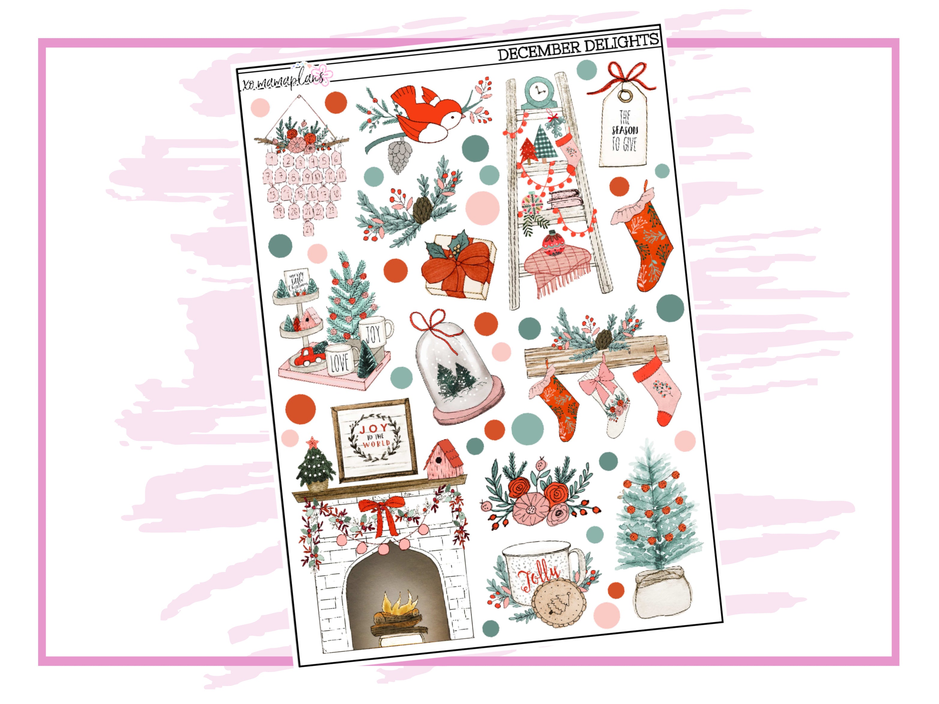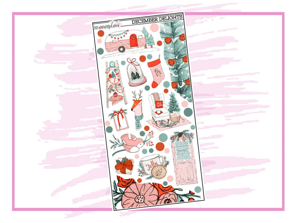 December Delights Deco Stickers Great for any planner or journal Sticker sheet is approx- 5"x7" for matte 3.3"x6.9" for clear Hand Drawn Artwork By RosaBebe on Etsy