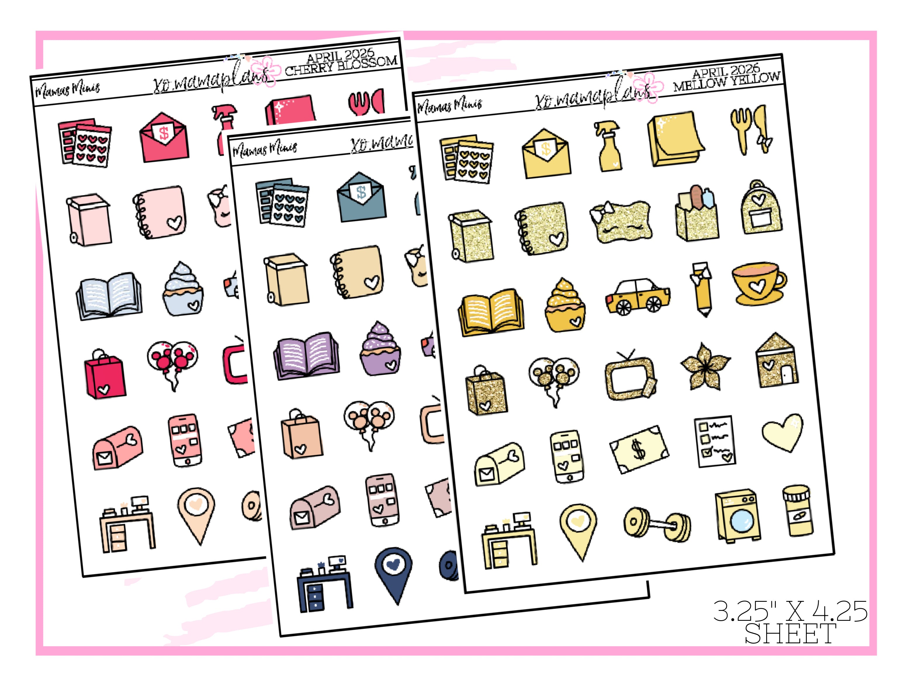 April 2026 Sampler StickersEvery last Sunday of the month, 3 new themed samplers will be released.A mini sheet perfect to slip into your planner pocket.Variety of colors to match many spreads.Sticker sheet is approx. 3."1 x 4.2"