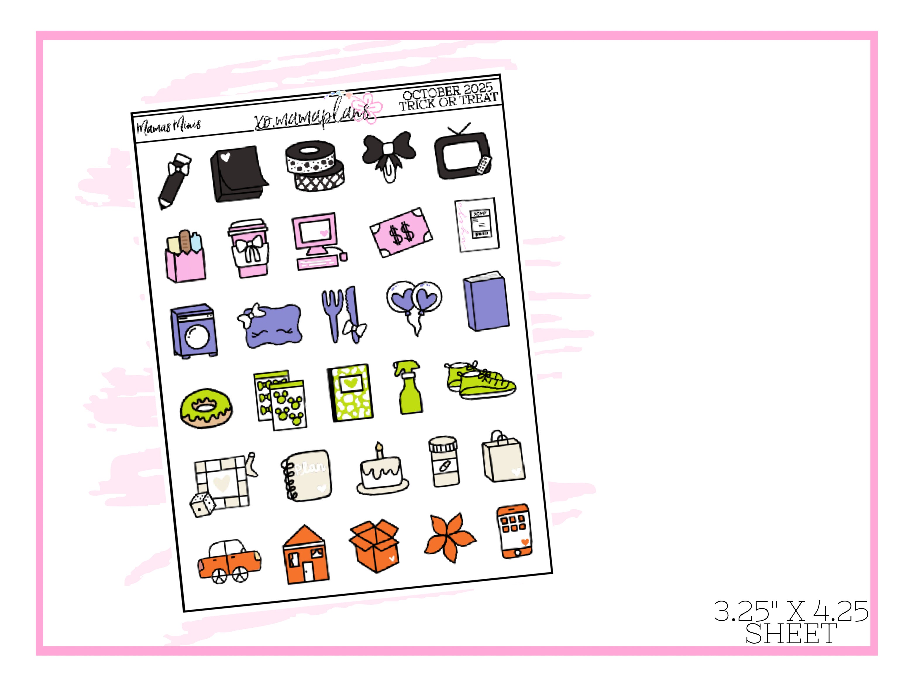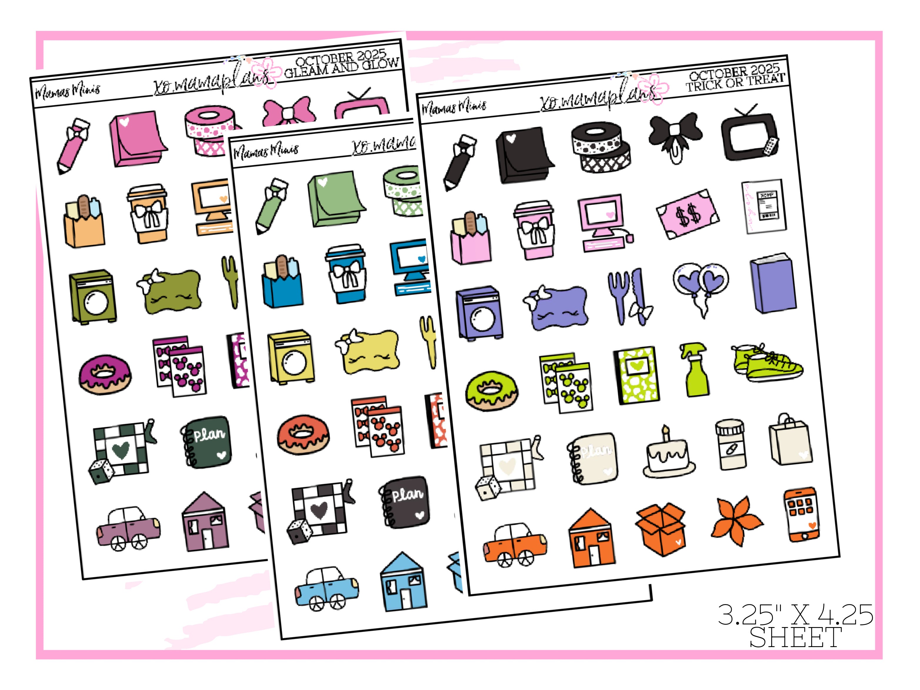 October 2025 Sampler Stickers Every last Sunday of the month, 3 new themed samplers will be released. A mini sheet perfect to slip into your planner pocket. Variety of colors to match many spreads. Sticker sheet is approx. 3."1 x 4.2"