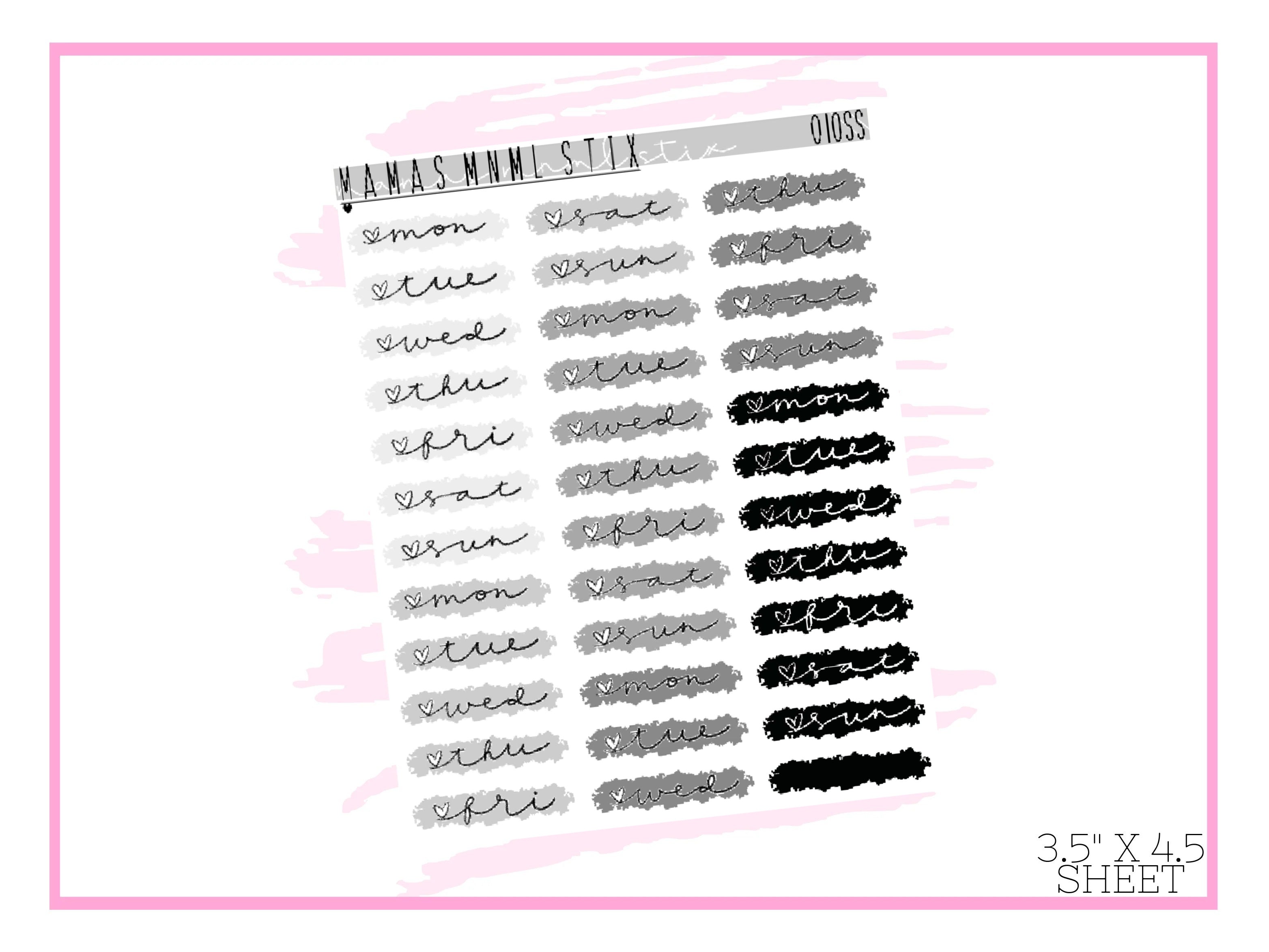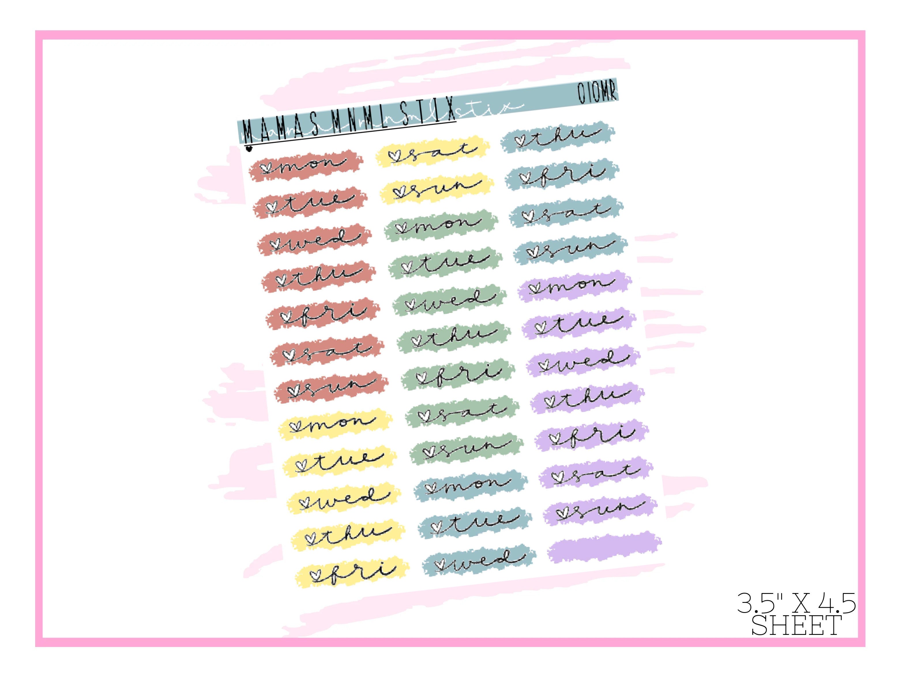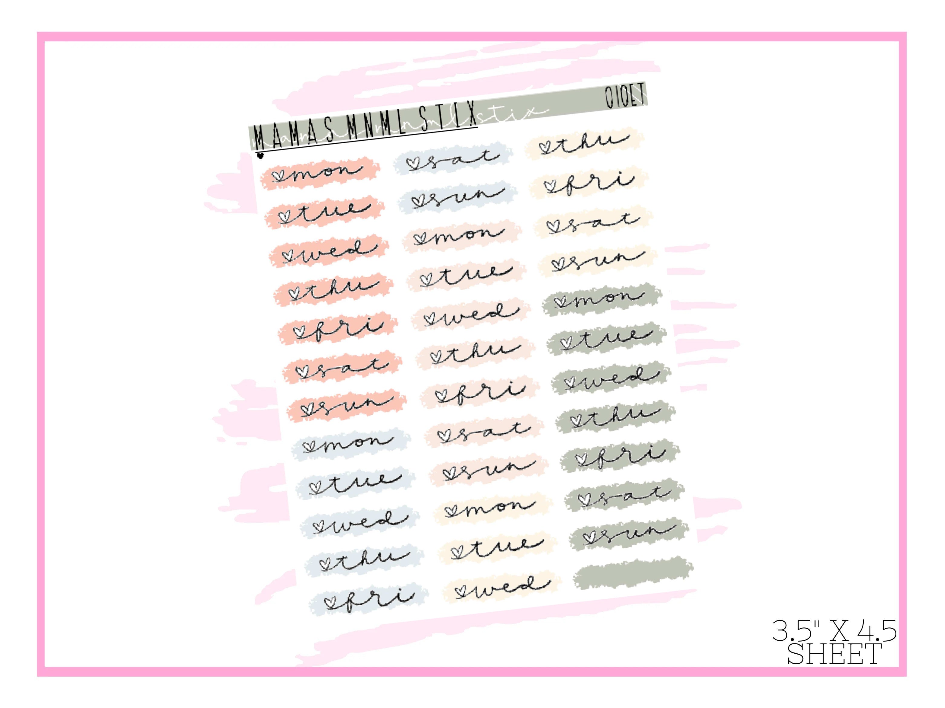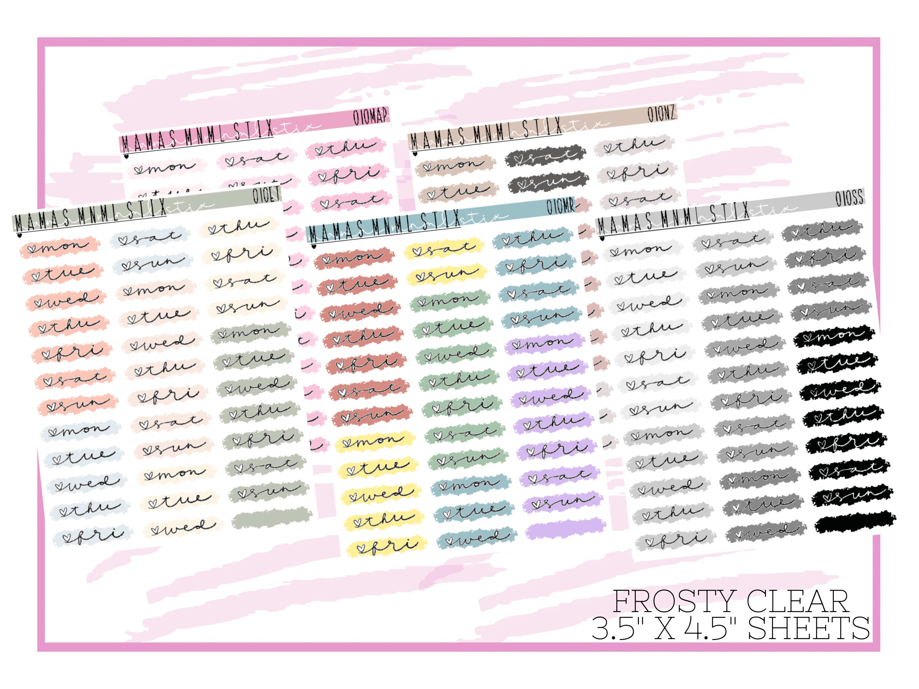 Days of the Week Swatches.Print on clear matte sticker paper.Sticker sheet is approx. 3.5" x 4.5"
