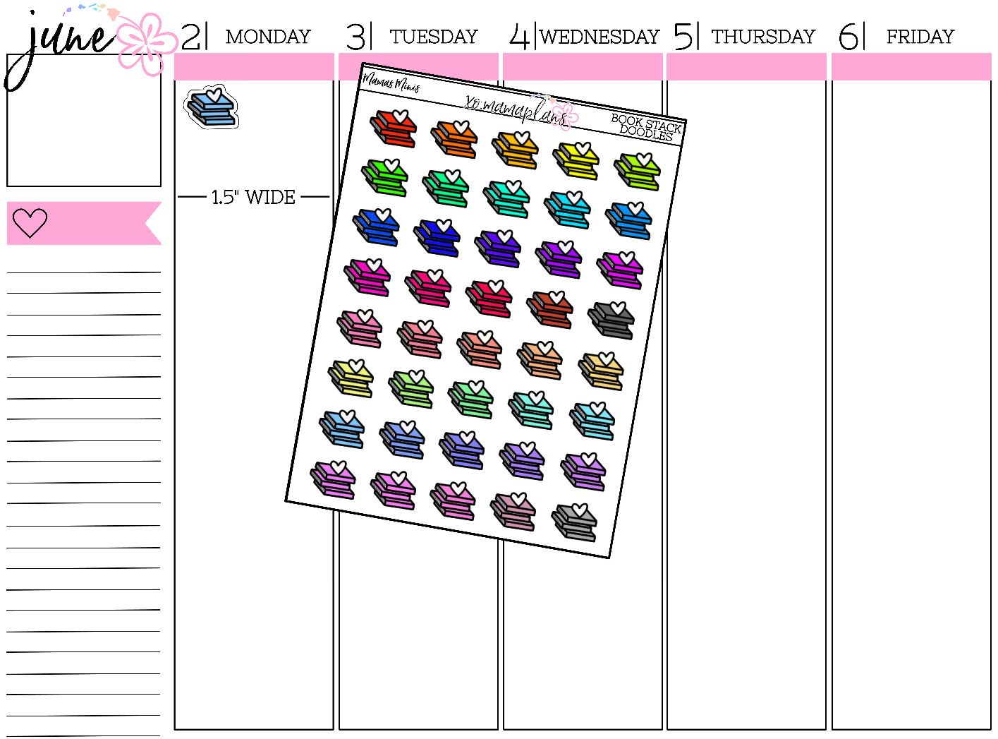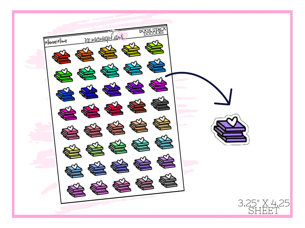 Book Stack Doodle Stickers A mini sheet perfect to slip into your planner pocket. Variety of colors to match many spreads. Sticker sheet is approx. 3."1 x 4.2